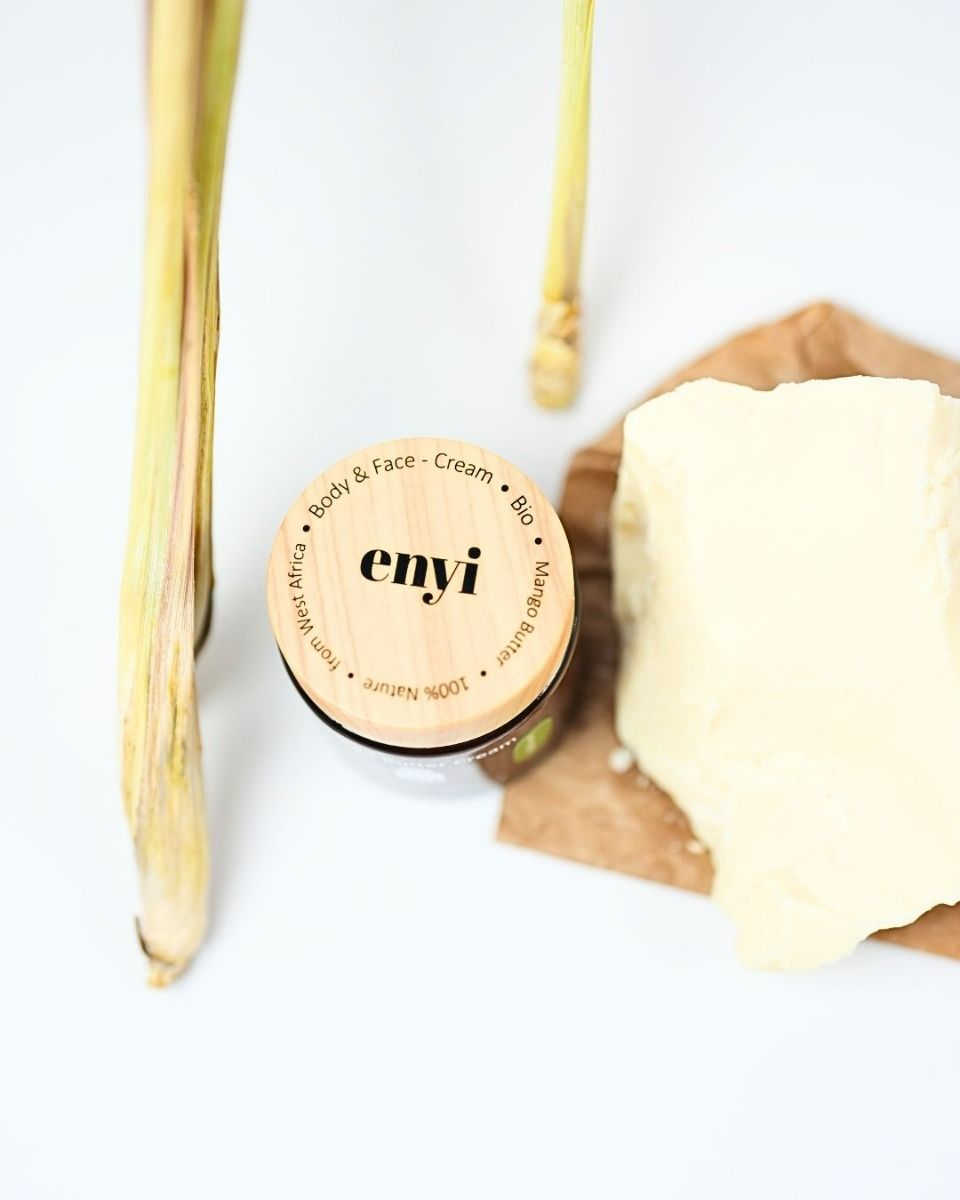 Wir sind stolz darauf, nur die besten, natürlichen Inhaltsstoffe zu verwenden. Unsere Sheabutter wird mit reinem ätherischen Zitronengrasöl angereichert, um ein Produkt ohne synthetische Zusätze und mit dem Besten der Natur zu gewährleisten.