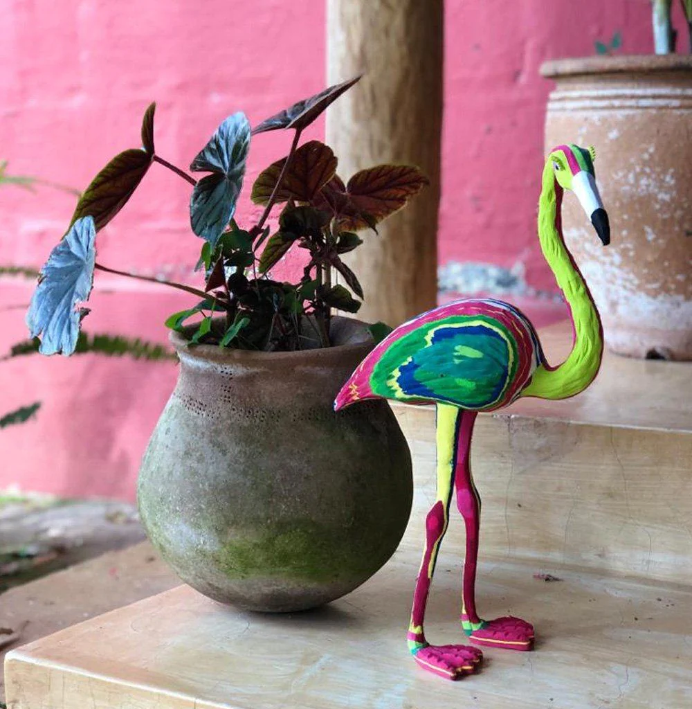 Die Skulptur Flip Flop Flamingo. Eine skurrile Ergänzung für Ihren Außenbereich oder Ihr Zuhause. Handgefertigt von kenianischen Künstlern aus recycelten Flip Flops.