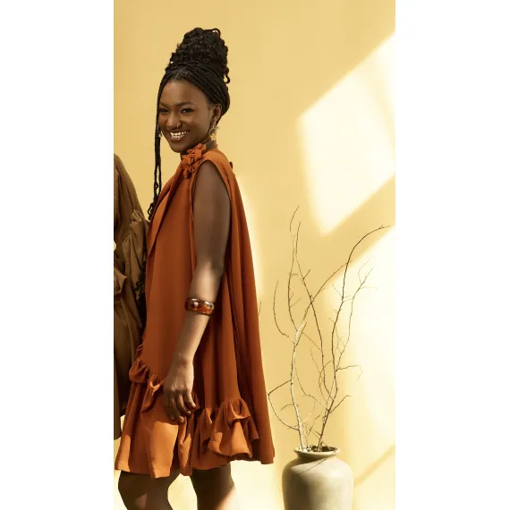 Das ärmellose Rosela Kleid ist ein vielseitiges, luftiges und fließendes Kurzkleid mit sommerlicher Farbe, Rosen-Details, versteckter Tasche und abnehmbarem Gürtel.