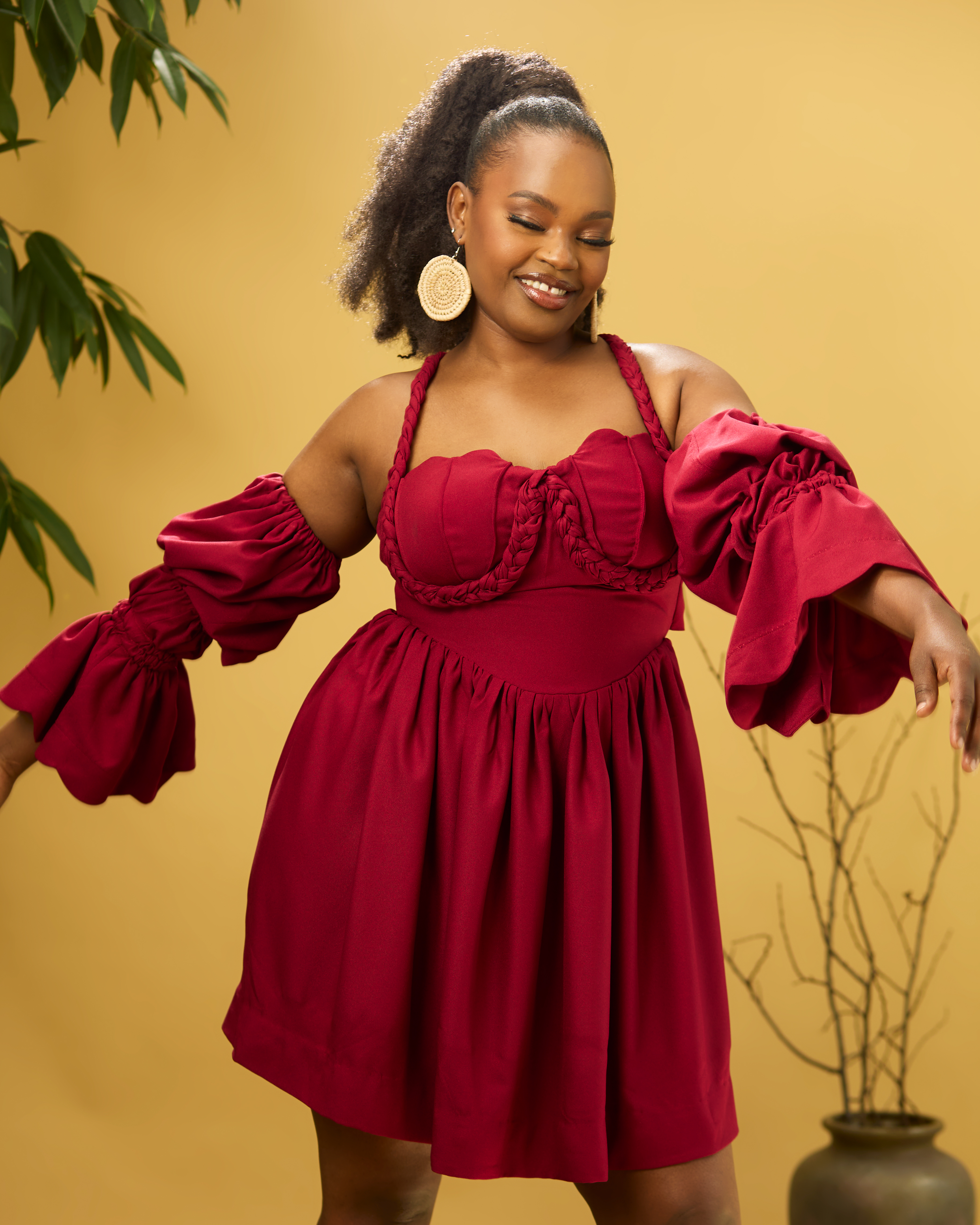 Dieses Kleid vereint eine atemberaubende Silhouette mit Komfort, Vielseitigkeit und Eleganz. Gefertigt aus leichtem, mattem Crepe-Georgette mit betonter Taille, Muschel-Corsage mit Flechtdetails, verstellbaren geflochtenen Trägern und einem elastischen Rückenband, das sich deiner Figur flexibel anpasst.