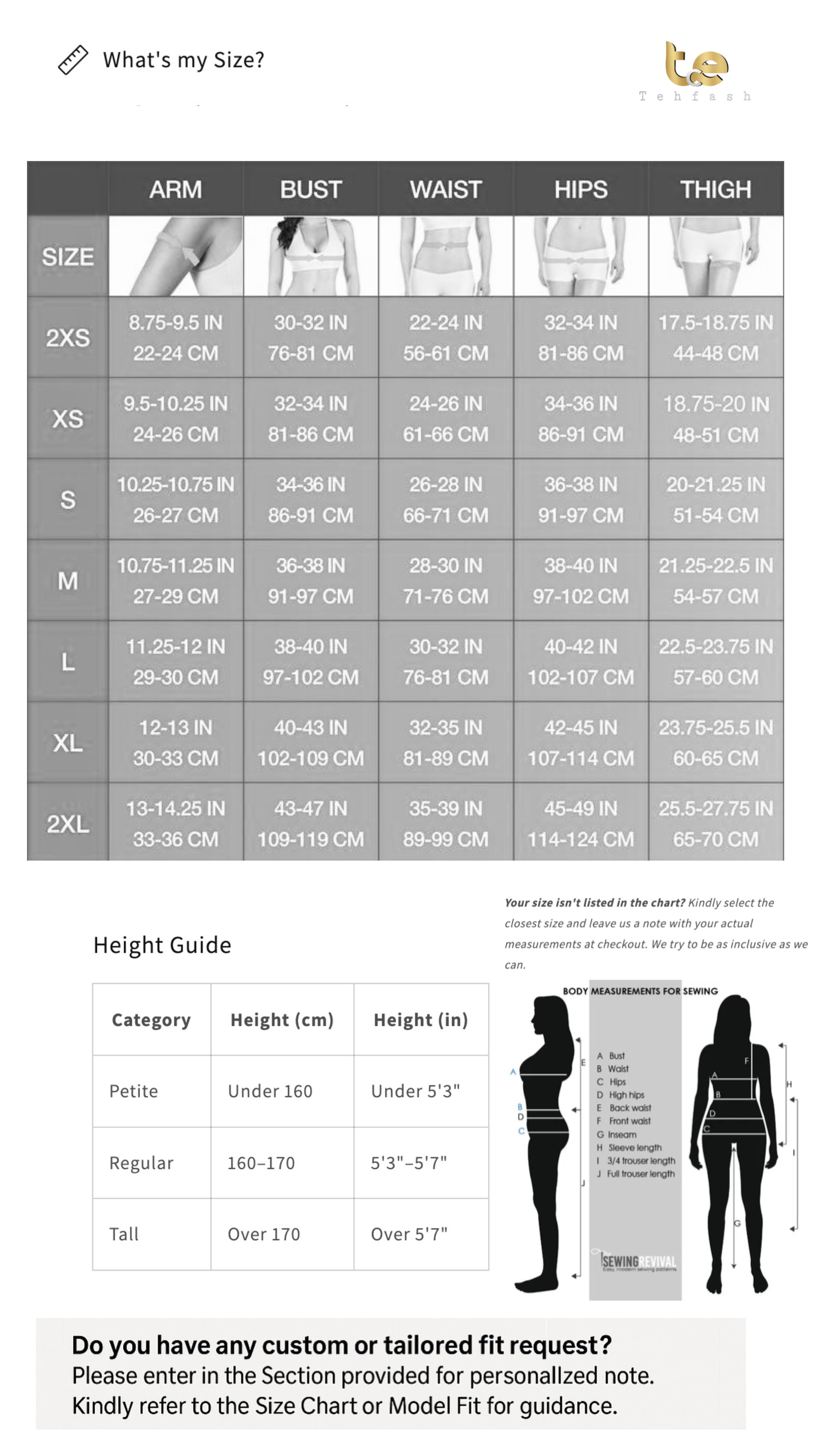 Bitte sieh dir unsere Größentabelle an und gib deine Körpergröße (z. B. Petite, Regular, Tall) sowie Wunschlänge an.