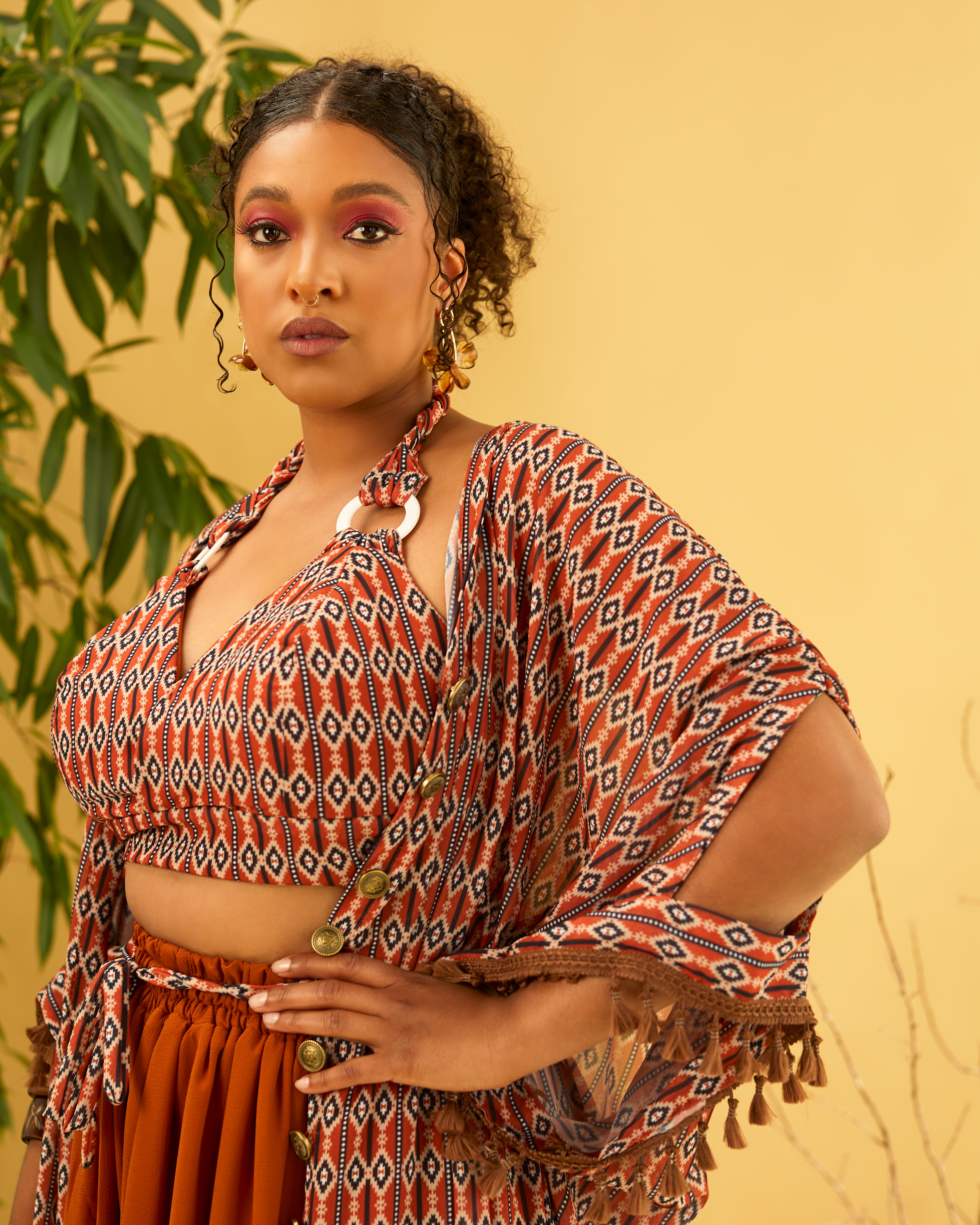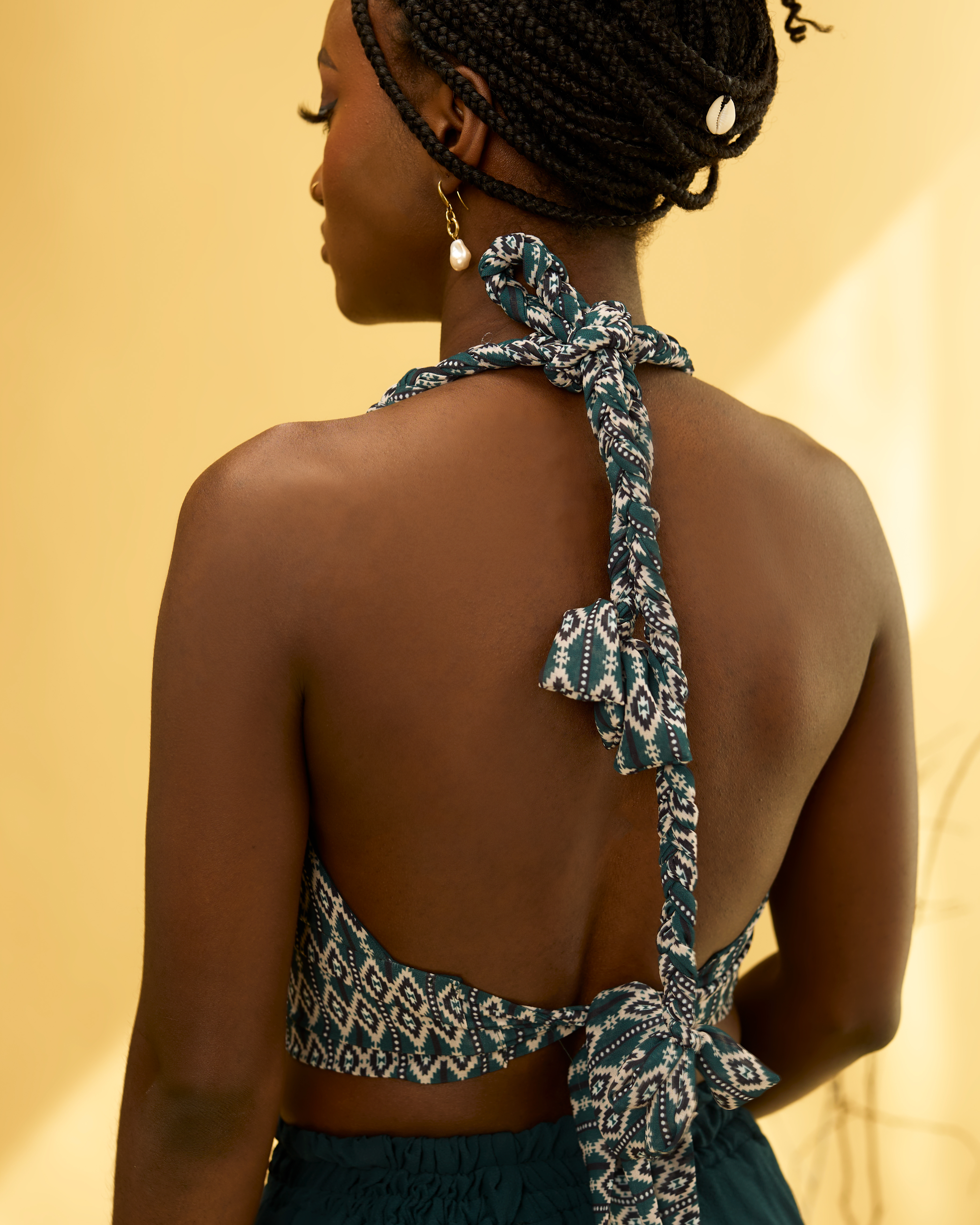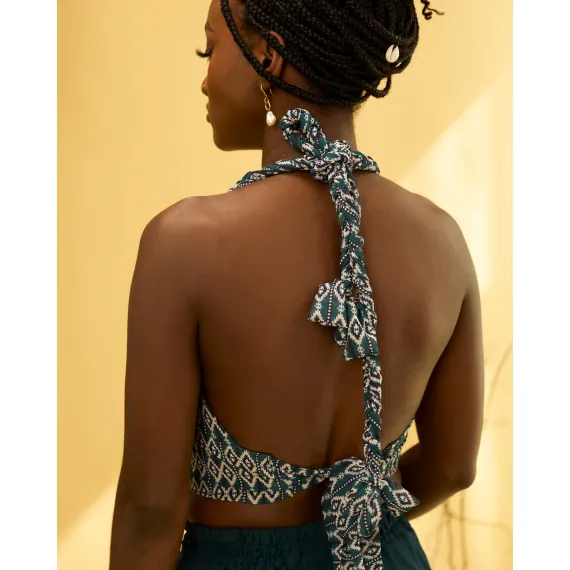 - Halterneck-Crop-Top mit geflochtenen Trägern und verstellbarem Rückenband