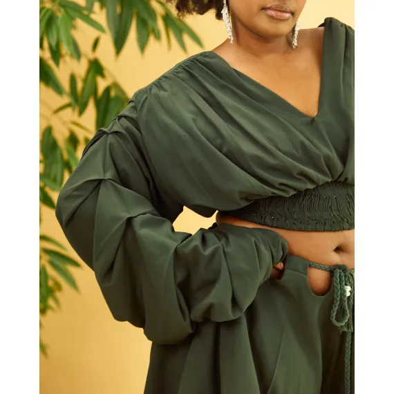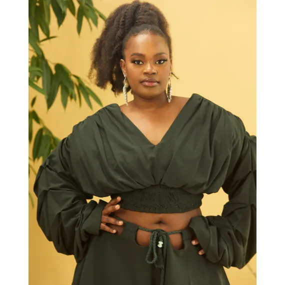• Besticktes Crop-Top mit gesmokter Taille